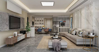 查看詳情本案在整體設計效果上,采用簡約現(xiàn)代的手法設計,主色使用灰白色系,再加以米白色提亮整個空間溫度,用藍色的餐椅和吧臺燈點綴空間色彩。造型上,客廳電視背景墻采用立體石塊,增加空間立體感受。裝飾上,一切從功能出發(fā),講究造型比例適度、空間結構圖明確美觀,強調外觀的明快、簡潔。體現(xiàn)了現(xiàn)代生活快節(jié)奏、簡約和實用,但又富有朝氣的生活氣息。