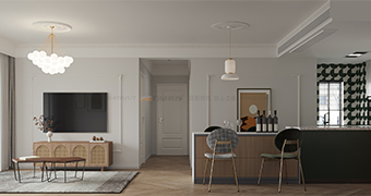 此為三房兩廳戶型,緊湊且功能劃分清晰??紤]到為剛需房,硬裝盡量簡潔大方為主,以白色打底,軟裝點綴復古感配飾家具,呈現(xiàn)靜謐的歲月,簡單中略帶些許情懷。