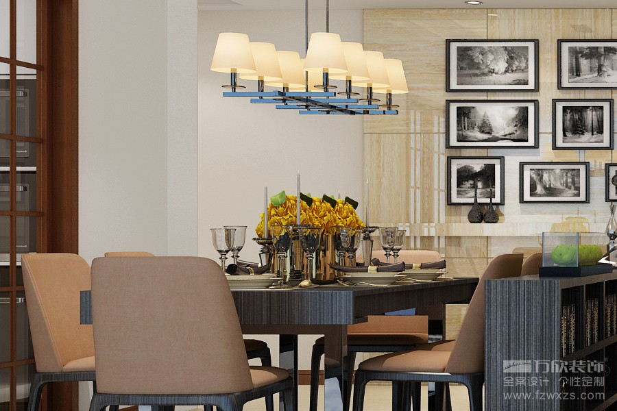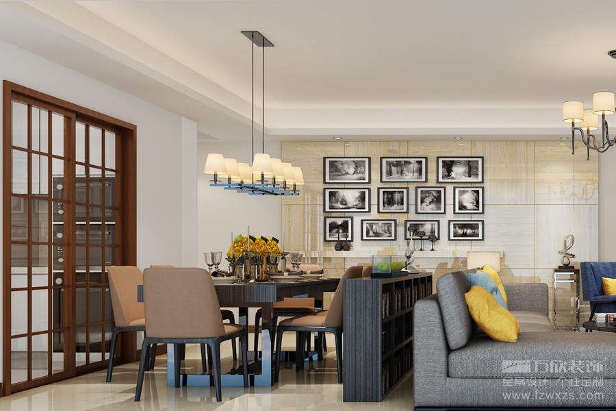 客廳與餐廳以一面低矮書柜進(jìn)行劃分,既可作小型書架,讓客廳也能有書房的屬性;又可作為餐邊柜,擺放些好看的裝飾物,點(diǎn)綴用餐時(shí)光~