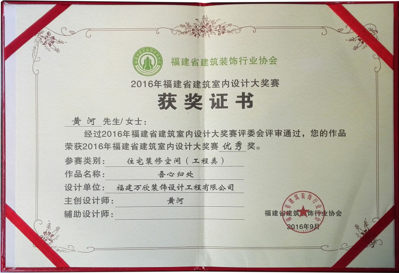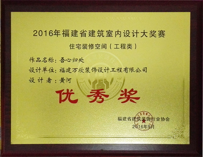 - >萬欣裝飾作品《吾心歸處》榮獲2016年福建省建筑室內設計大獎賽優(yōu)秀獎