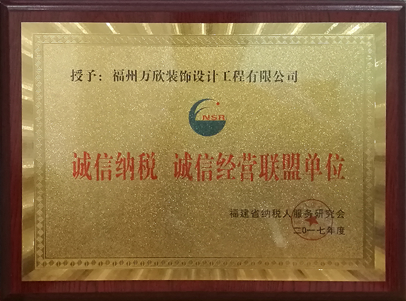 - >萬欣裝飾被評為誠信納稅 誠信經營聯(lián)盟單位