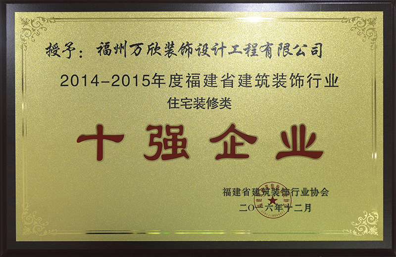 - >萬欣裝飾被評為2015年度福州市住宅裝飾行業(yè)十強企業(yè)