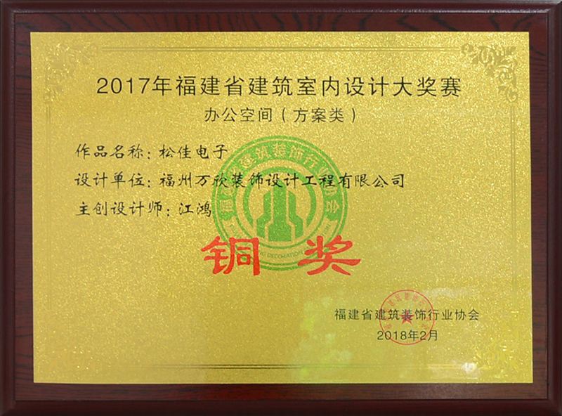 - >松佳電子作品榮獲第八屆中國國際空間設計大賽福建賽區(qū)銅獎
