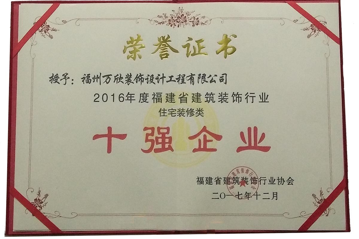 - >萬欣裝飾榮獲2016年度福建省建筑裝飾行業(yè)住宅類裝修十強企業(yè)
