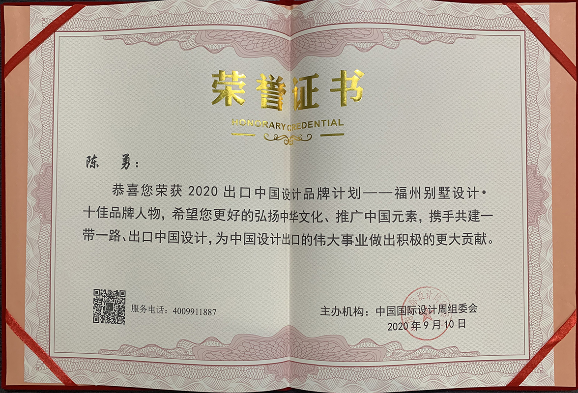 - >萬欣裝飾設計師陳勇榮獲2020出口中國設計品牌計劃——福州別墅設計·十佳品牌人物