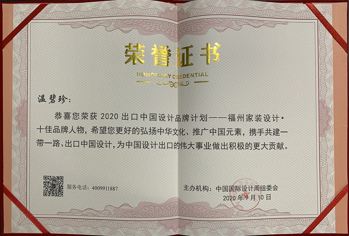 - >萬欣裝飾設計師溫碧珍榮獲2020出口中國設計品牌計劃——福州家裝設計·十佳品牌人物