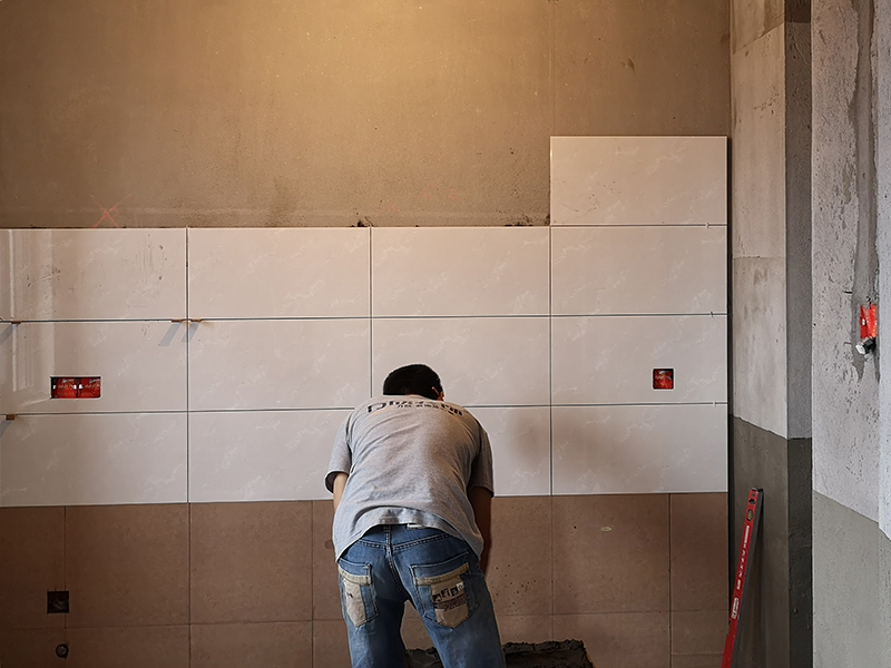 檢查瓷磚鋪貼平整度