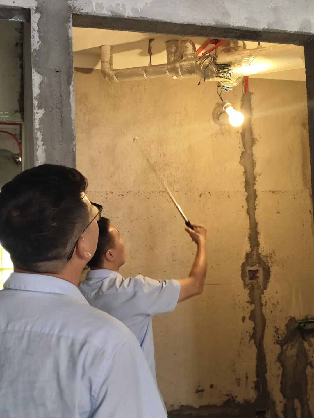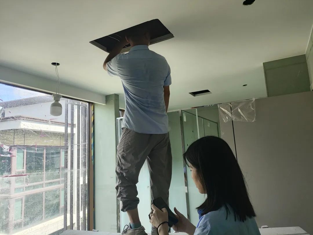 △檢查浴室排氣管道開口是否正常,為后續(xù)浴室安裝排氣扇做準(zhǔn)備。