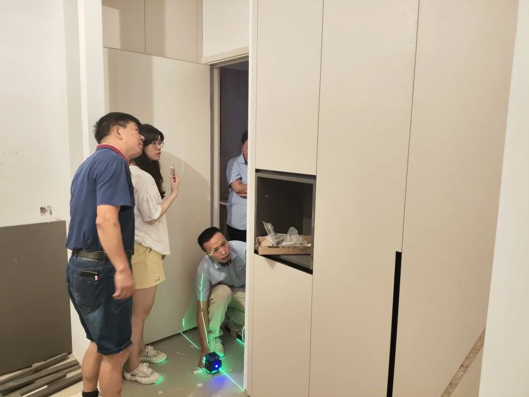 △中秋當(dāng)日聯(lián)檢途中偶遇業(yè)主,現(xiàn)場(chǎng)對(duì)業(yè)主提出的問題做出詳細(xì)的解答,并與業(yè)主溝通施工方面想法要求與工藝的各種注意事項(xiàng),能夠得到業(yè)主的認(rèn)可,就是我們堅(jiān)持聯(lián)檢的動(dòng)力。