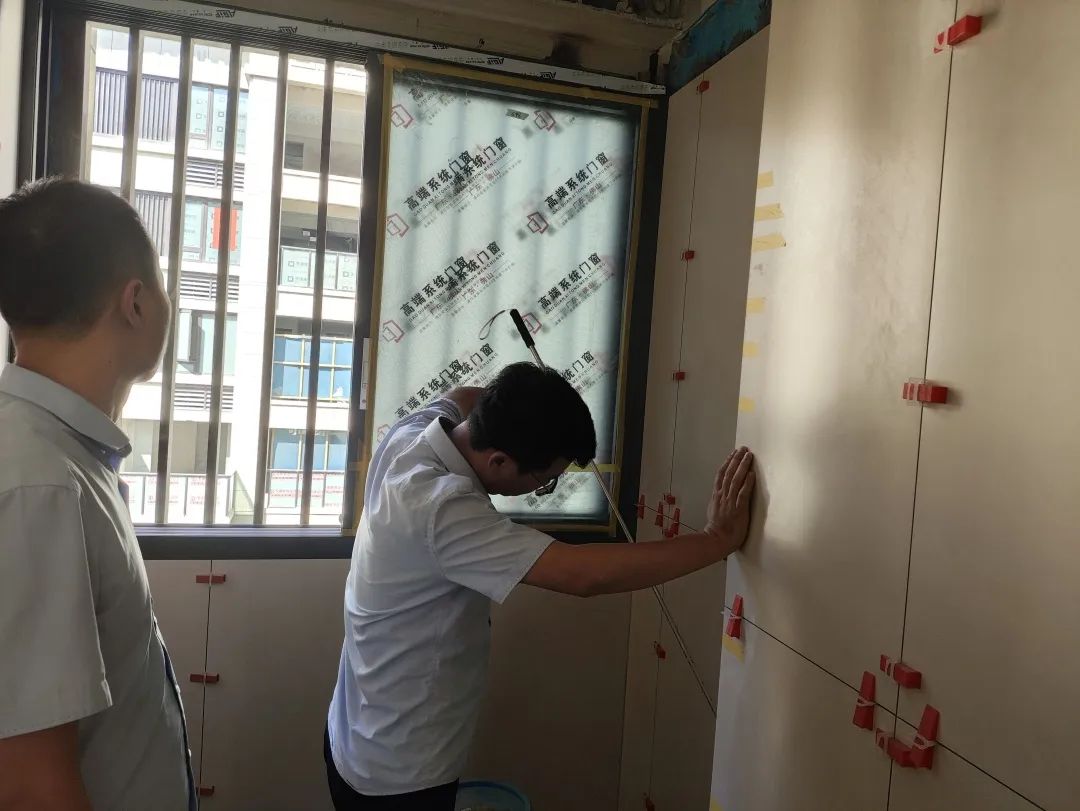 △現(xiàn)場(chǎng)對(duì)柜子進(jìn)行仔細(xì)檢查,確保業(yè)主入住后的正常使用。