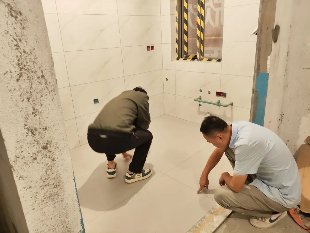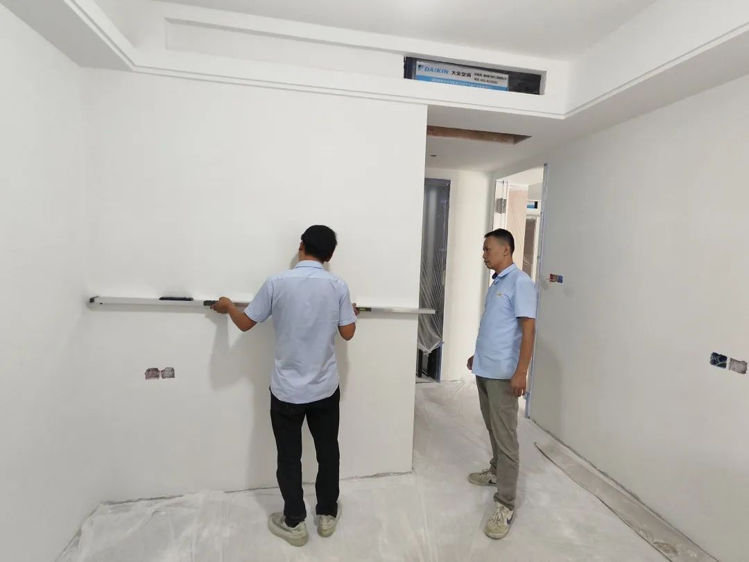△現(xiàn)場(chǎng)對(duì)油漆、柜子、衛(wèi)浴等已安裝設(shè)備進(jìn)行仔細(xì)檢查,確保業(yè)主入住后的正常使用。